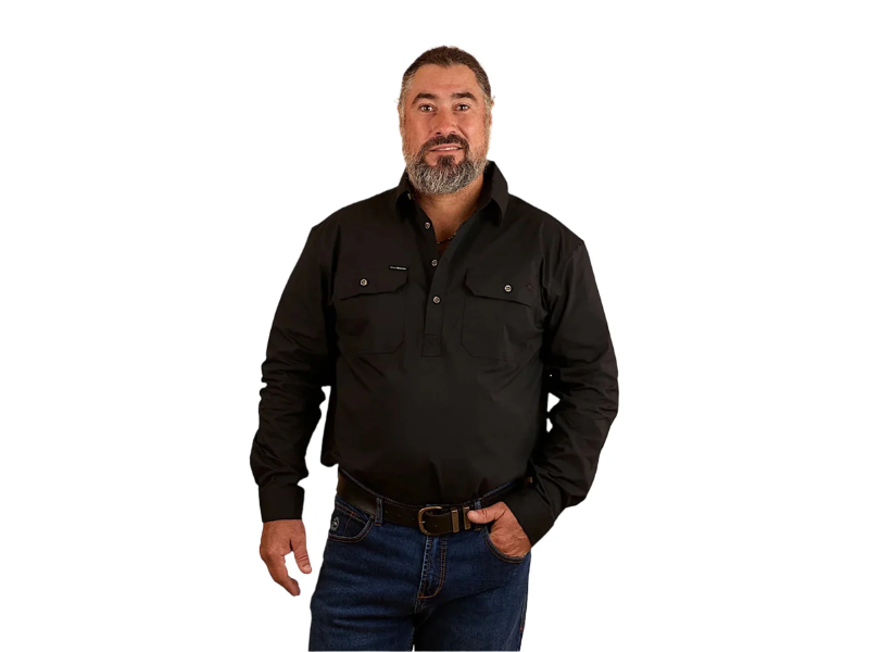 For men who need work shirts that combine performance with comfort, Ringers Western introduces the King River Mens Half Button Work Shirt. Constructed from soft, durable 100% cotton, this work shirt for men is designed to be breathable and light, even in the heat. With a UPF 50+ rating, it offers outstanding sun protection, while the half-button closure promotes airflow for extra comfort. Featuring a loose fit and functional front pockets, this men’s work shirt is a reliable and practical choice for demanding work environments.
