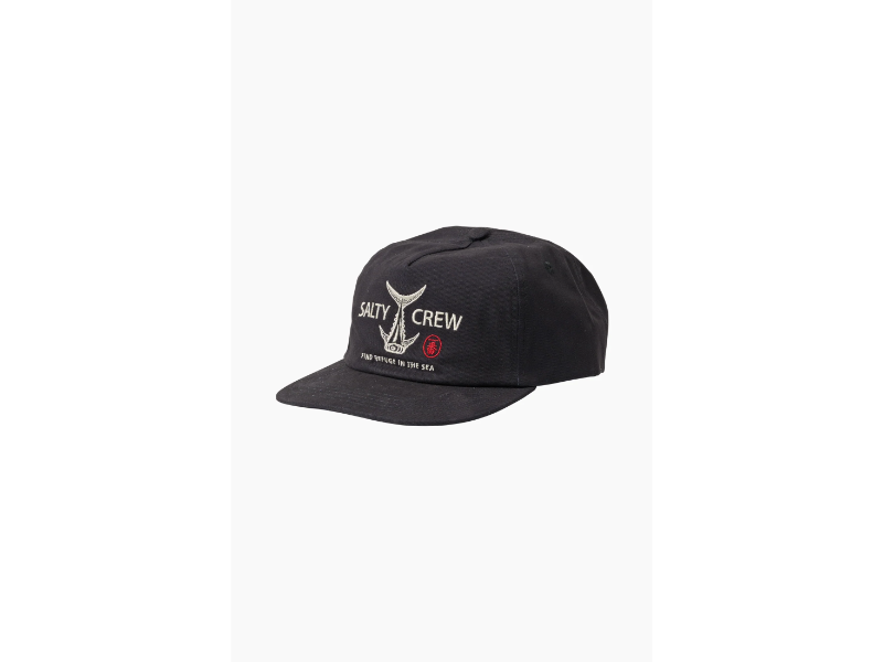 Ichiban 5 Panel Cap in Vintage Black is a 5 panel cap with flat peak. Made from 100% Cotton Twill with faux leather strapback & finished with embroidery at front.