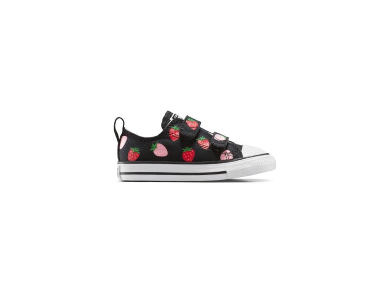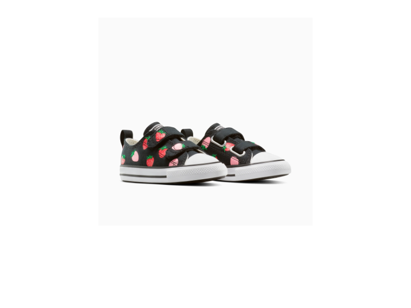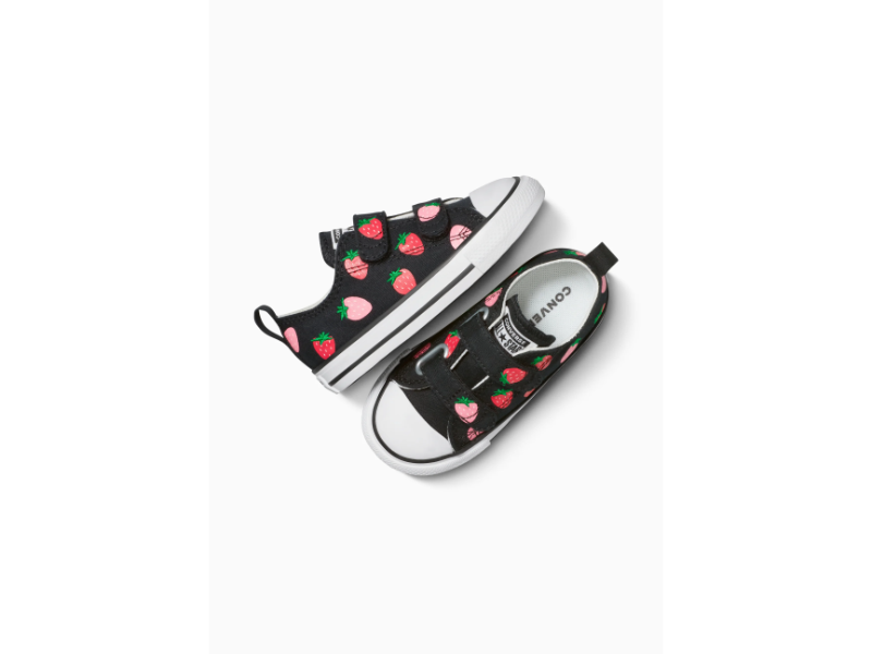INFANT CT STRAWBERRIES LOW by CONVERSE is a low top sneaker designed for little feet. Featuring a canvas upper for that classic Chucks look, this sneaker is brought to life with playful, strawberry graphics. Soft foam cushioning and a durable rubber sole with a toe cap provide comfort and protection. Dual adjustable hook and loop straps ensure easy on and off wear, while a back pull tab adds extra convenience. Finished with the iconic CONVERSE ‘All Star’ license plate at the tongue.