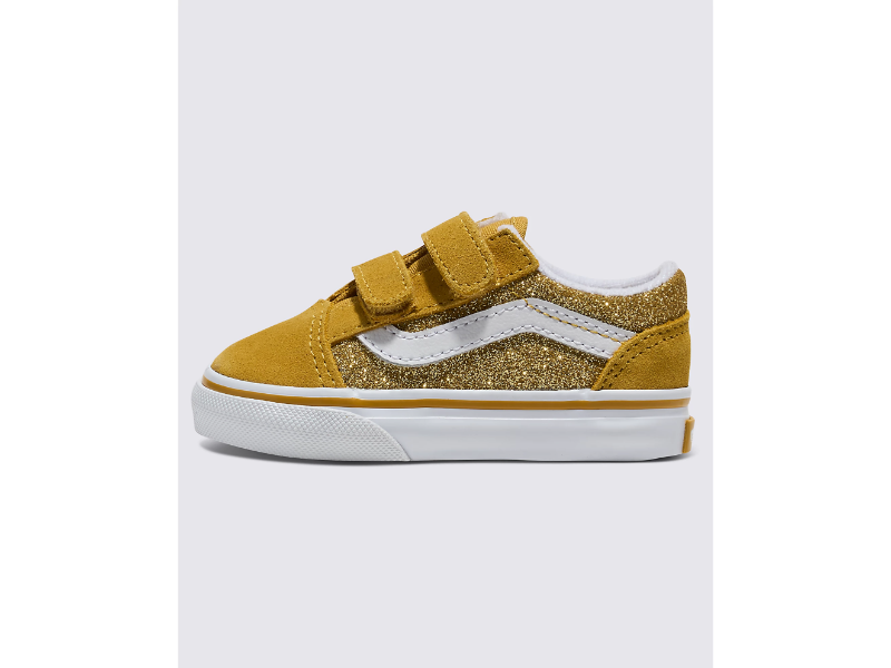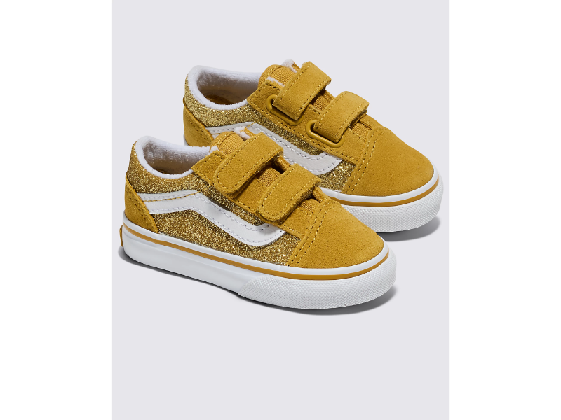 The Toddlers Old Skool V reimagines our iconic Sidestripe shoe by swapping traditional laces for double hook-and-loop closures. Made with suede and glittery textile uppers, this low-top style maintains its classic appeal while providing an easy, secure fit that will keep your little one comfortable all day.