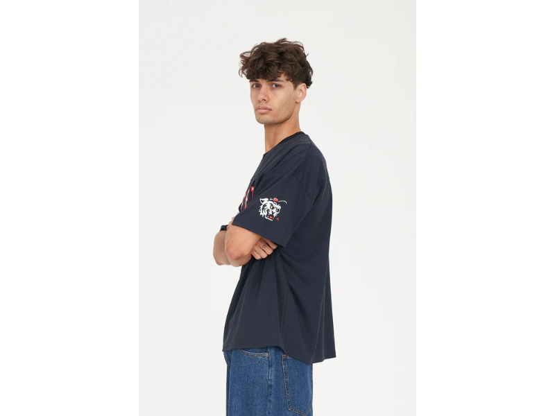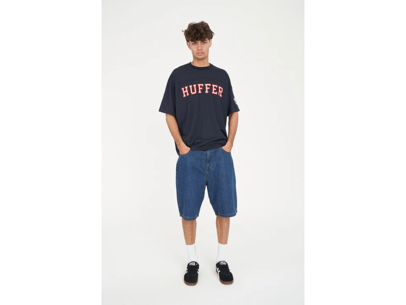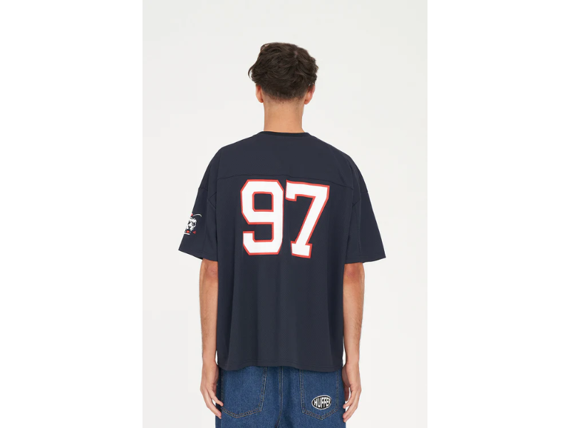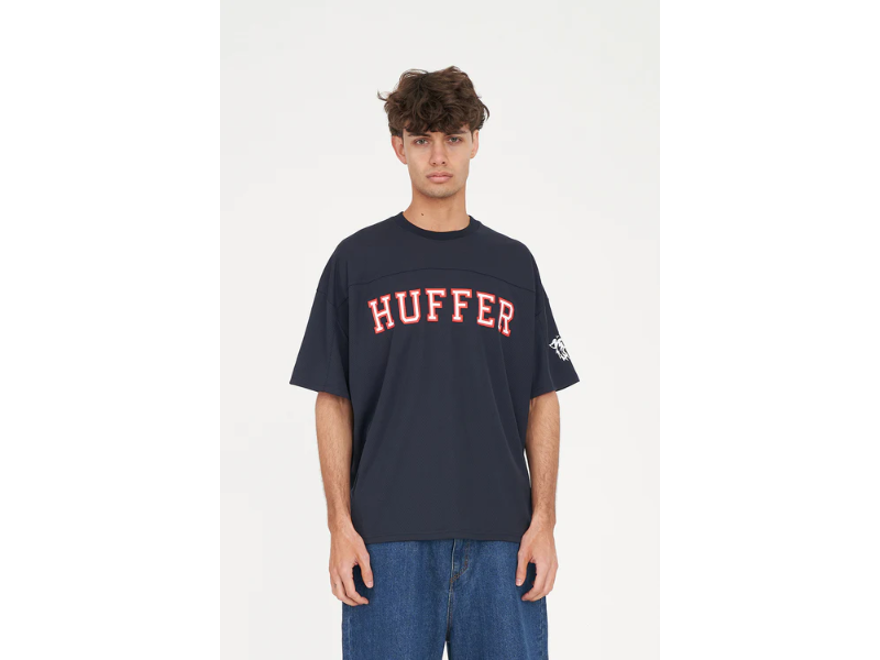 • What you need to know: 100% Polyester Mesh, 205gsm, 25mm Neck rib, Relaxed fit, Short sleeve, Huffer branded placement screenprint