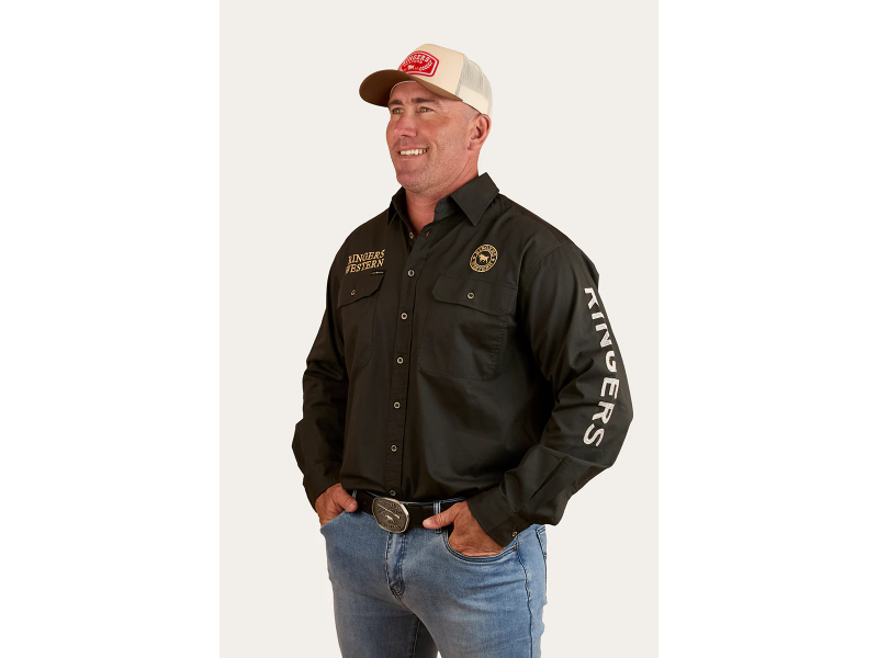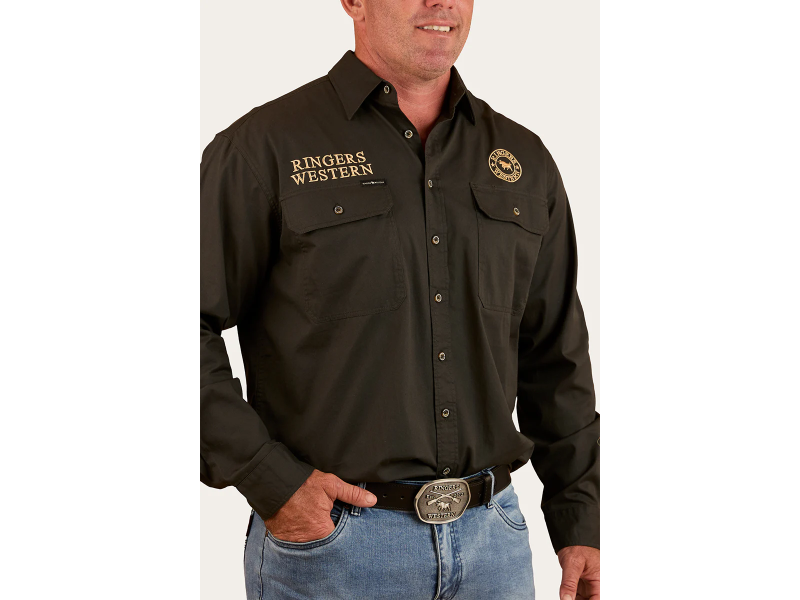 Stay comfortable and protected with the Hawkeye Men’s Full Button Work Shirt from Ringers Western. Made from soft, breathable cotton, this work shirt for men offers all-day comfort with a UPF 50+ rating for sun protection. The full button closure and loose fit allow freedom of movement, while double chest pockets provide room for essentials. Featuring multiple embroidered logos and a large embroidered crest, the Hawkeye is as stylish as it is functional, making it a go-to choice for the worksite or beyond.