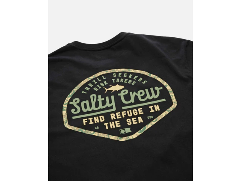Border Fill Classic SS Tee in Black is made from soft spun cotton jersey, 180gsm in weight. Finished with Salty Crew clamp label at sleeve hem. Screen printed front and back prints.