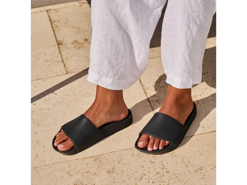 A pair of arch support slides so comfy and supportive, you’ll never want to take them off your feet!