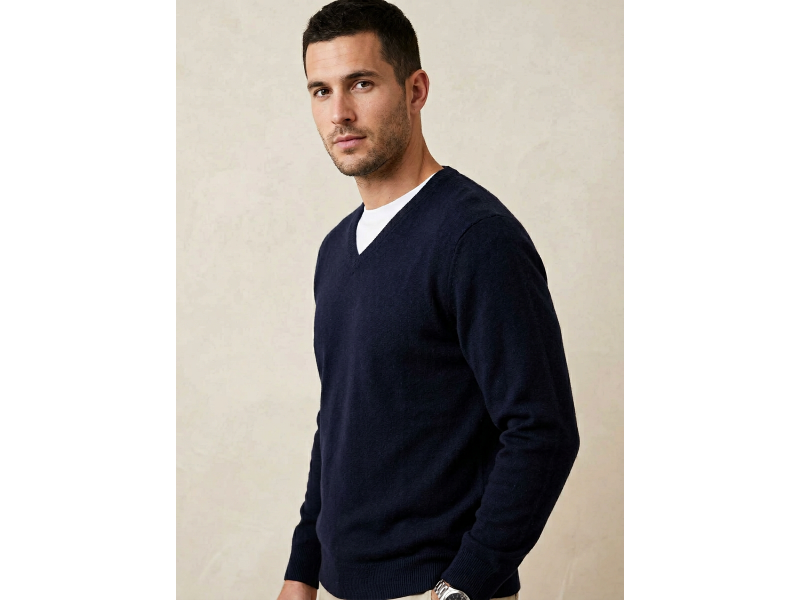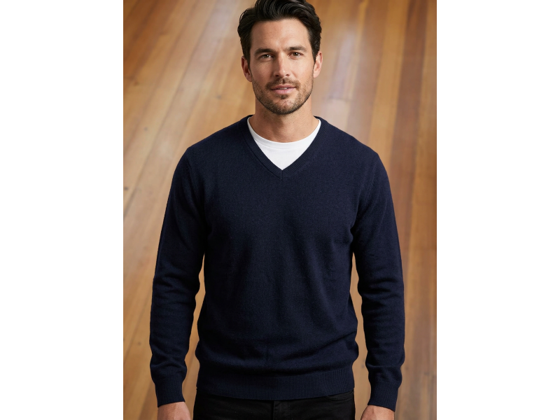 100% MERINO V NECK CLASSIC NAVY JERSEY