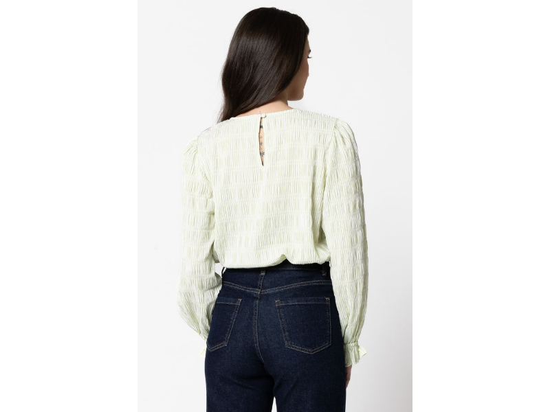 Embrace effortless style and comfort—add this must-have piece to your collection today! This olive stripe is designed to make a statement. Featuring long puff sleeves with elasticated cuffs adorned with frills, this blouse combines elegance with a touch of playfulness. The round neck with a back button and keyhole detail adds a sophisticated flair, while the curved hem ensures a flattering fit. Crafted from a luxurious cotton blend, this blouse is not only soft and breathable but also perfect for any occasion.
