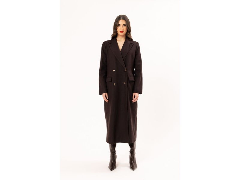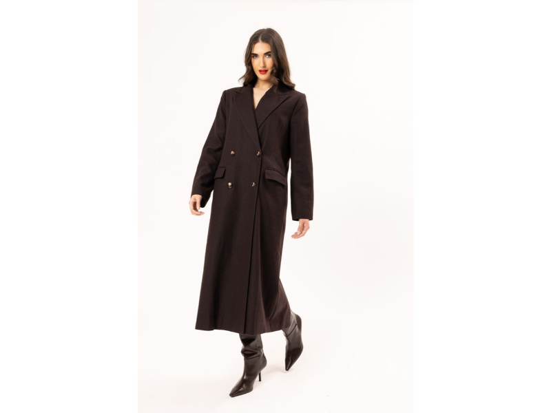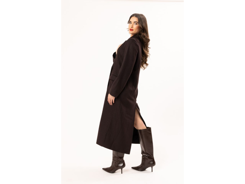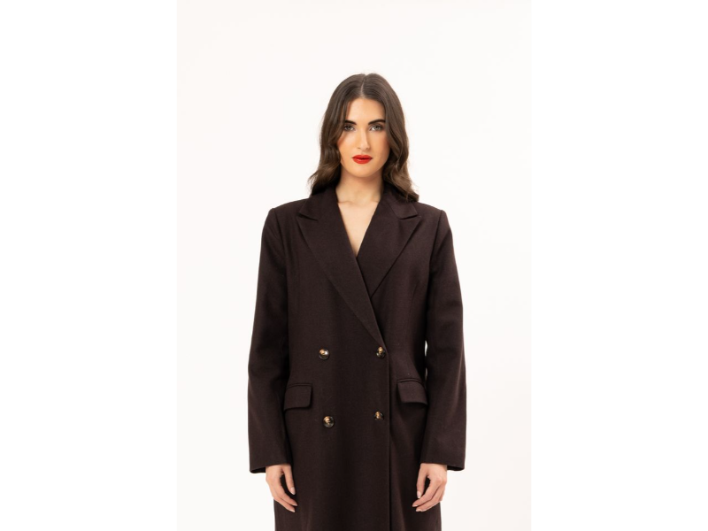 Step out in confidence and embrace the winter season with this must-have outerwear piece that effortlessly combines elegance and functionality. Our luxurious Wool blend rich chocolate Winter coat, designed for both style and comfort. This stunning midi-length coat features a relaxed fit that drapes beautifully over any outfit. The double-breasted front not only adds a touch of sophistication but also ensures you stay warm and cozy. With long sleeves and functional front pockets with flaps, while enjoying the fully lined interior that provides an extra layer of warmth. The back vent allows for ease of movement