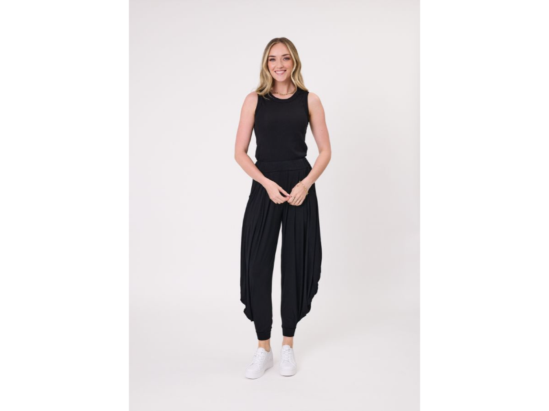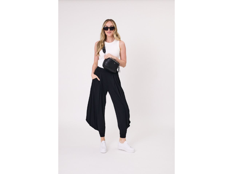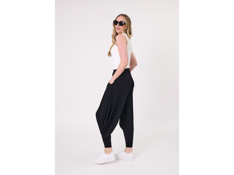 • Cropped length with elasticated cuffs and a relaxed, loose leg.