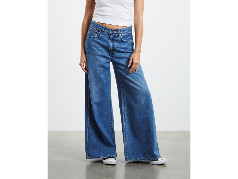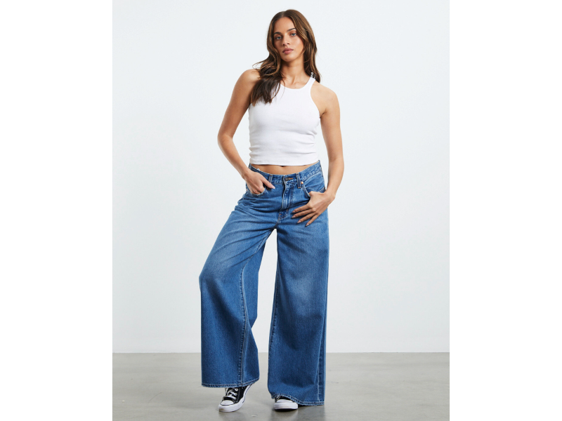 The XL Flood Jeans by Levi’s come in a mid blue wash. The jeans are a wide flared leg design and feature a mid rise waist, relaxed fit, five pockets, zip fly with button closure and signature branding. Style it with a fitted tank top, blazer and platforms heels for a kitted out look.