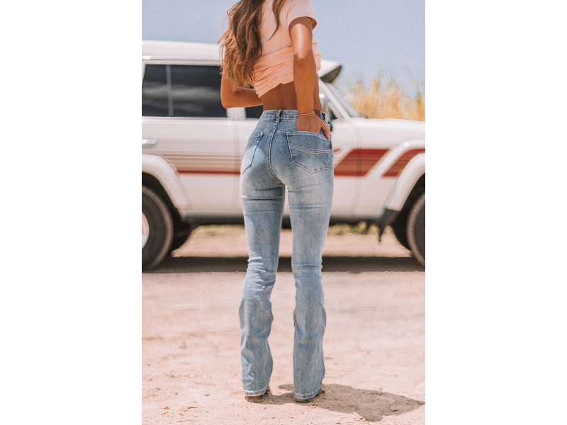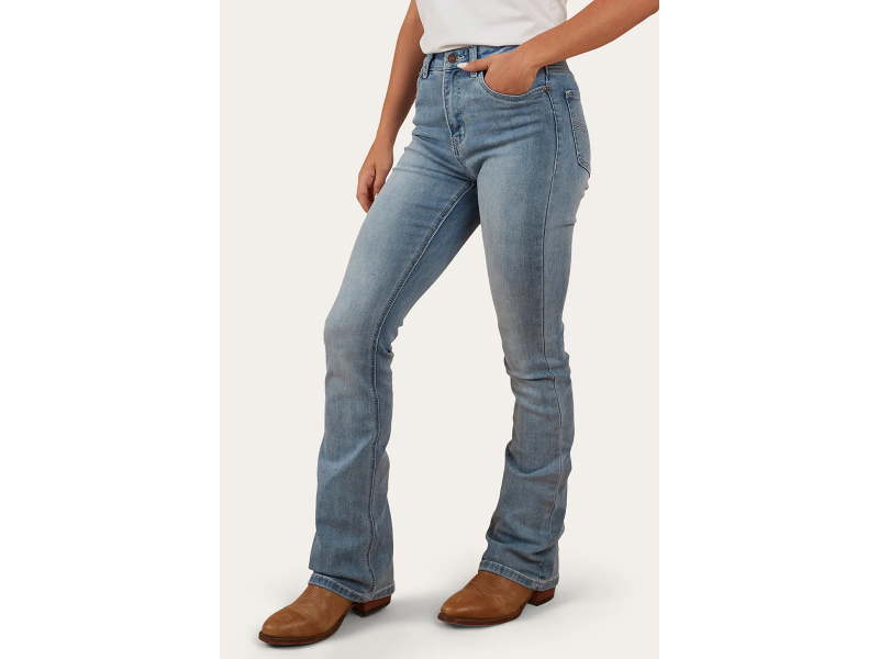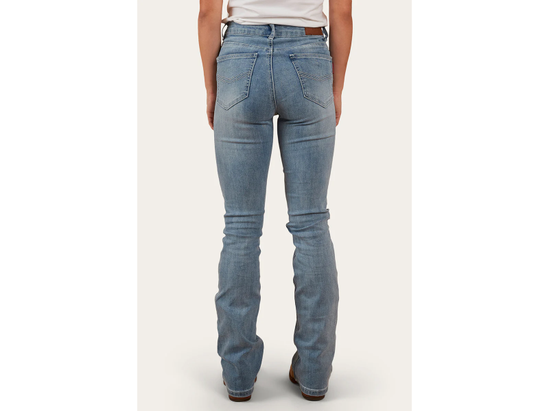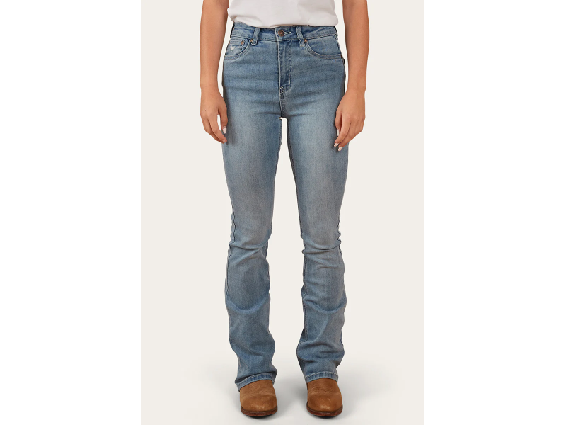 The Penny Women’s High-Rise Bootleg Jeans are high-rise essentials for the modern cowgirl. These jeans sit above the belly button, hugging the waist and hips with a flattering fit that contours your curves. The signature bootleg flare begins just below the knee, creating a timeless silhouette. Constructed from a durable cotton blend with a touch of elastane, they offer the breathability and comfort you want while retaining that authentic Western denim feel. A five-pocket design and iconic Ringers Western embroidery complete the look, making these jeans as functional as they are stylish.