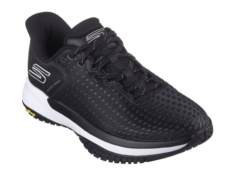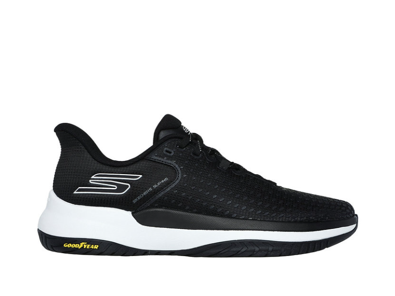 Take your game to the next level with Skechers Hands Free Slip-ins: Viper Court Elite. Created specifically for the competitive Netball athlete, this slip-on court shoe features our exclusive hands-free Heel Pillow with an athletic mesh and screen print upper, removable Arch Fit insole, and lightweight ECO FLIGHT cushioning. The design is complete with a Goodyear Rubber Performance Outsole built for increased durability and control on the netball court surface.